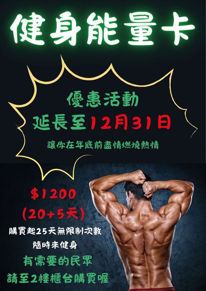 【健身能量卡】優惠活動正式 延長至 12 月 31 日!