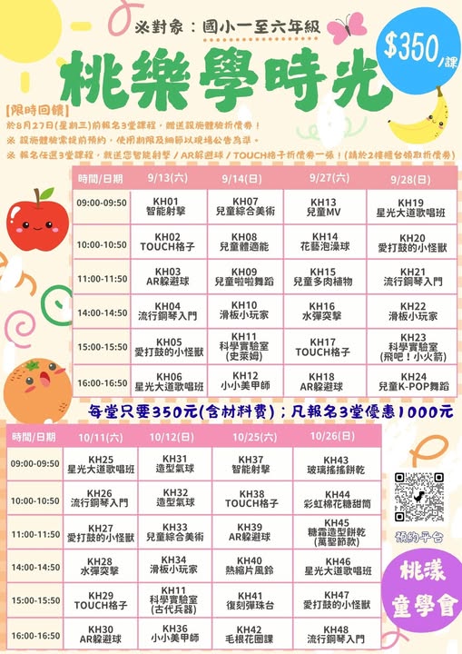 每堂都有不同主題,歡迎孩子挑選最有興趣的課程~