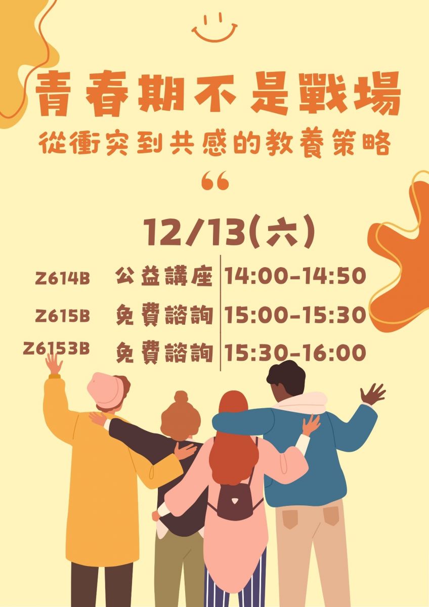 內容:專業講師帶您了解如何在青春期與孩子建立有效的溝通,從衝突走向理解,共同成長。