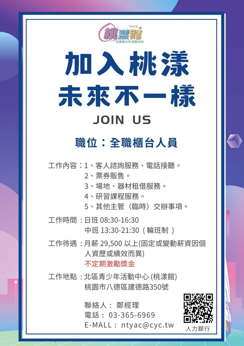 如果你熱愛服務、喜歡與人互動,並且想要在活力十足的環境中成長,桃漾館就是你理想的職場!